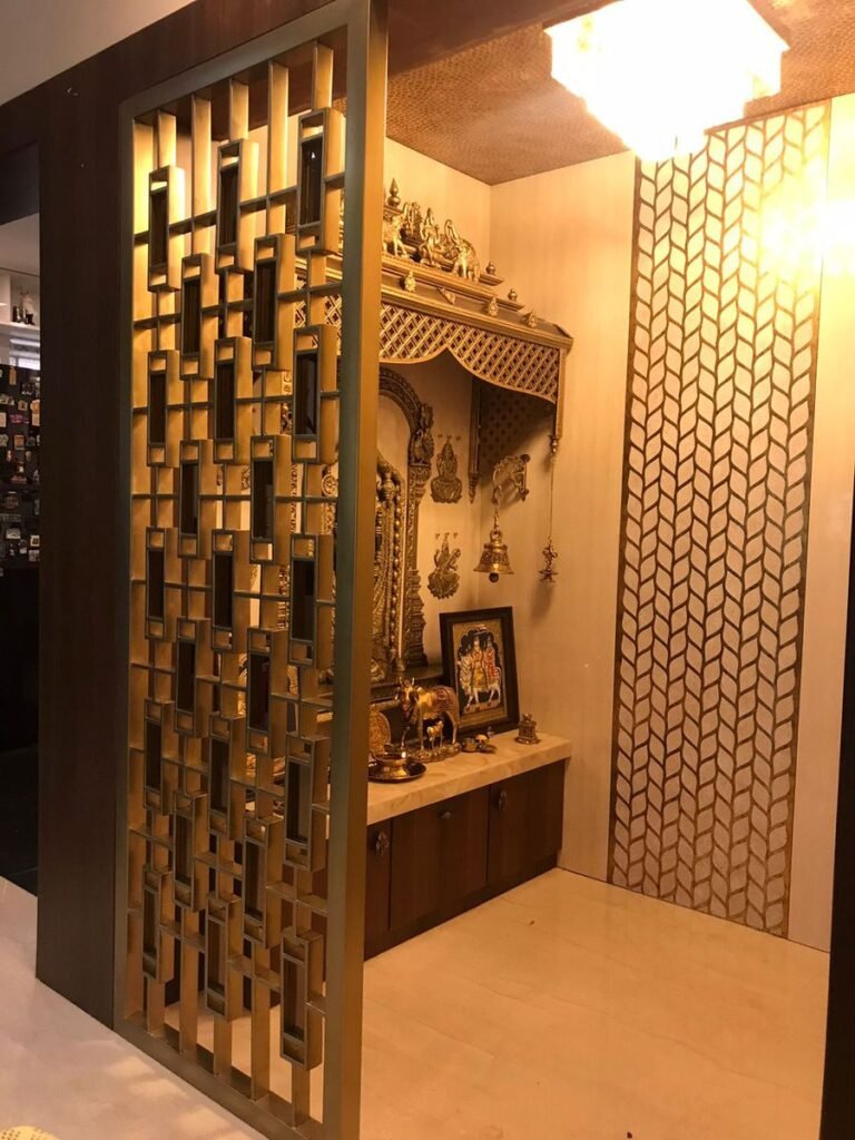 Many homes use jali panels to create beautiful partitions for home temples. The intricate patterns add a spiritual and elegant touch to the space.
