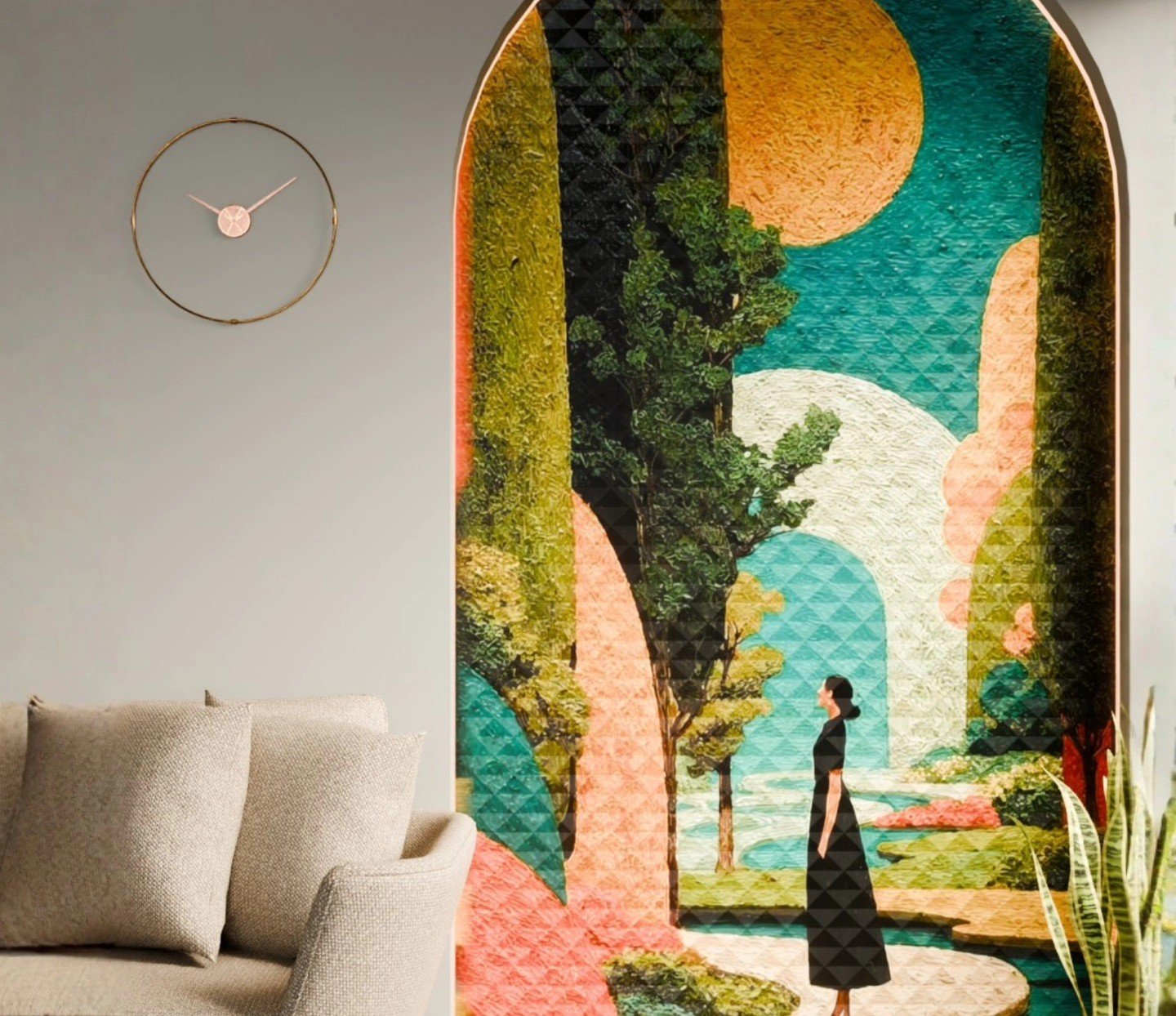 Vibrant and immersive, the Dune & Teal Marquetry...